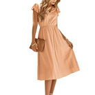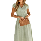 Această rochie de vară ușoară oferă un decolteu în V flatant și mâneci cu volane pentru o notă romantică. Croiala sa fluidă asigură un confort optim pe parcursul întregii zile. Perfectă pentru ieșirile în oraș, brunch-uri sau vacanțe.