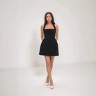 Tato mini letní šaty okouzlují svým výstřihem, který zvýrazňuje ramena. Jejich rozšířený střih přináší lehkost a eleganci každému pohybu. Ideální pro slunečné dny nebo letní výlety se stylem.