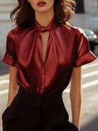 Diese elegante Bluse verführt durch ihren modernen Ausschnitt, der mit einer subtilen Öffnung verziert ist. Ihr fließender Schnitt passt sich allen Körperformen an und bietet Komfort und Raffinesse. Vielseitig, kann sie sowohl zu formellen Anlässen als auch zu lässigen Momenten getragen werden.