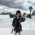 This women's kimono jacket is adorned with a refined print featuring Japanese birds, symbols of harmony and grace. Its loose and flowing cut ensures perfect comfort, whether for a casual look or a more dressed-up outfit.