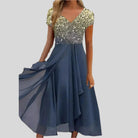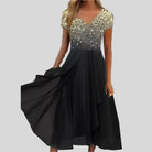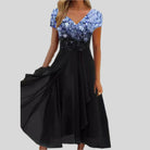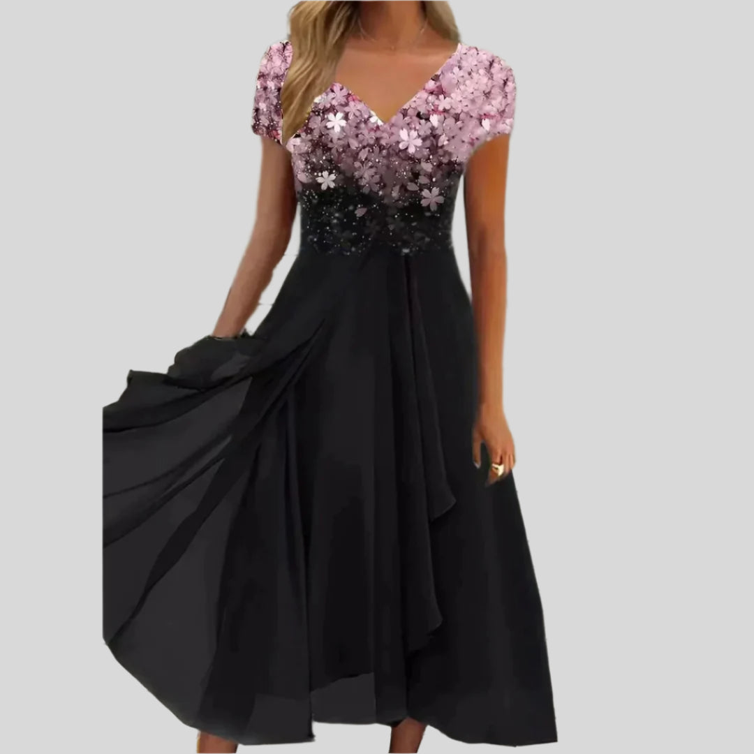 This midi dress features a modern floral design, perfect for various occasions. Available in several color combinations, it suits all styles. Designed to offer comfort and elegance, it is ideal for sunny days.