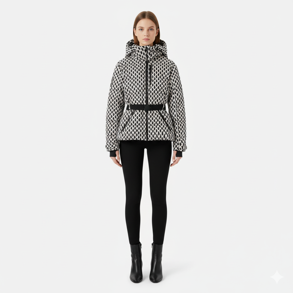 Farah | Veste D’Hiver Ceinturée Femme — Élégance Graphique & Chaleur Moderne