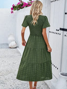 השמלה הבוהמיינית האלגנטית עם השרוולים הקצרים מושלמת למראה גם נינוח וגם אלגנטי. המותן המוקפצת מדגישה את הסילואטה, בעוד שהגזרה הזורמת מבטיחה נוחות אופטימלית. מושלמת לקיץ, ליציאות או לימים שטופי שמש.