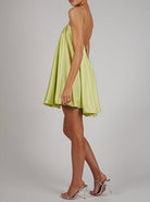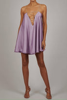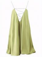 השמלה הקצרה והזורמת הזו מדגישה את הסילואט עם אלגנטיות וקלת משקל. הרצועות הדקות המעוטרות בתכשיטים מעניקות נגיעה מוארת ומעודנת. אידיאלית לערבים או להזדמנויות מיוחדות שבהן כל פרט חשוב.