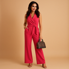 このシックなジャンプスーツは、ワイドレッグのフィット感のあるカットを特徴としており、魅力的なシルエットを提供します。ウエストで結ぶデザインがあなたの曲線を引き立て、最適な快適さを確保します。正式なイベント、ビジネスミーティング、またはエレガントな外出に最適です。