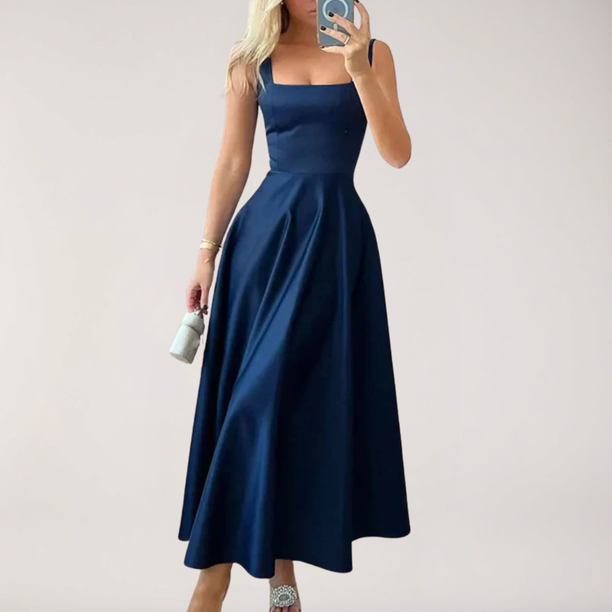 リム | エレガントなミディドレス 四角いネックライン