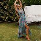 デリア | ボヘミアンの深いVネックロングドレス – 自然な自由と誘惑