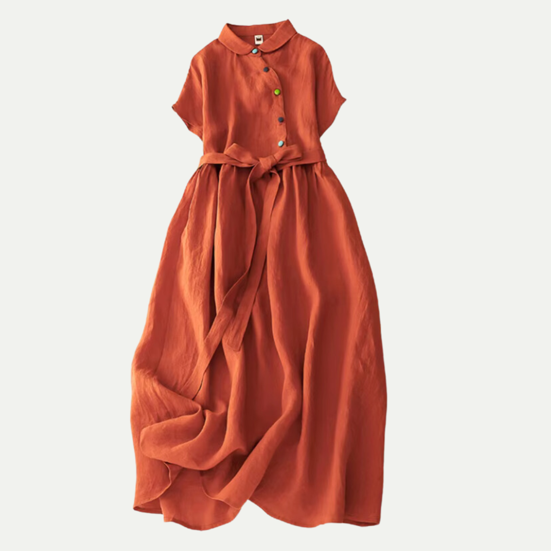 このロングドレスは、フラッタリングなシルエットとヴィンテージスタイルからインスパイアされたデザインで魅了します。快適で通気性があり、どの季節でも簡単に着用できます。繊細なボタンと丁寧な仕上げが、時代を超えた魅力を与え、古典小説にふさわしい雰囲気を醸し出します。