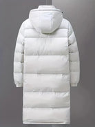 Denne lange dunjakken med hette for kvinner gir en omsluttende varme samtidig som den opprettholder et moderne og urbant utseende. Den er designet for å takle kalde dager, og kombinerer komfort, beskyttelse og eleganse i alle situasjoner. Dens enkle design tilpasser seg lett dine vinterantrekk for en chic og avslappet stil.