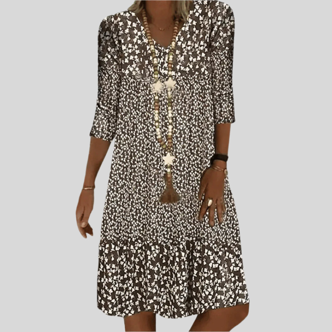Ta sukienka midi ma korzystny dekolt w kształcie litery V i elegancki krój. Dostępna w kilku kolorach, pasuje do różnych okazji. Jej ponadczasowy design zapewnia wyrafinowany wygląd.